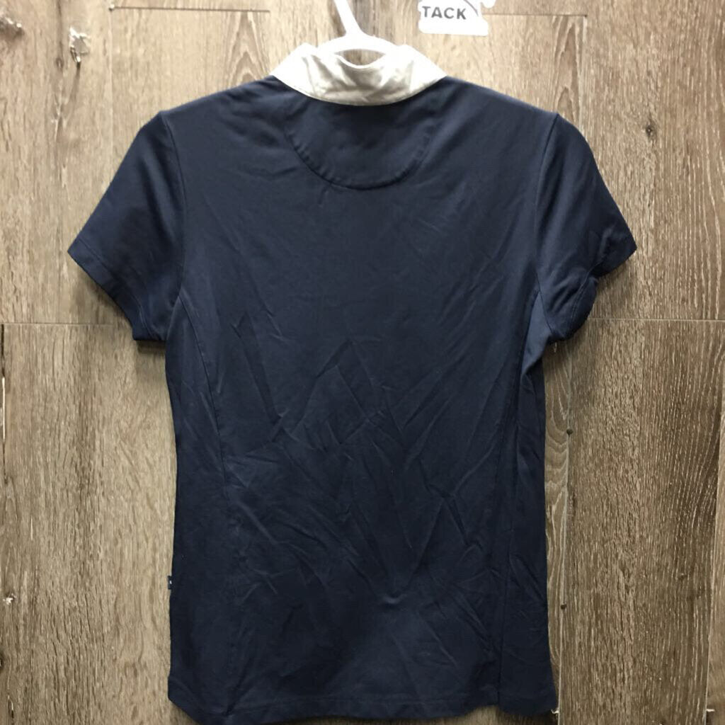 SS Show Shirt, 1/2 Zip Up, bling *gc, rubs, frays, collar: dingy & crinkles