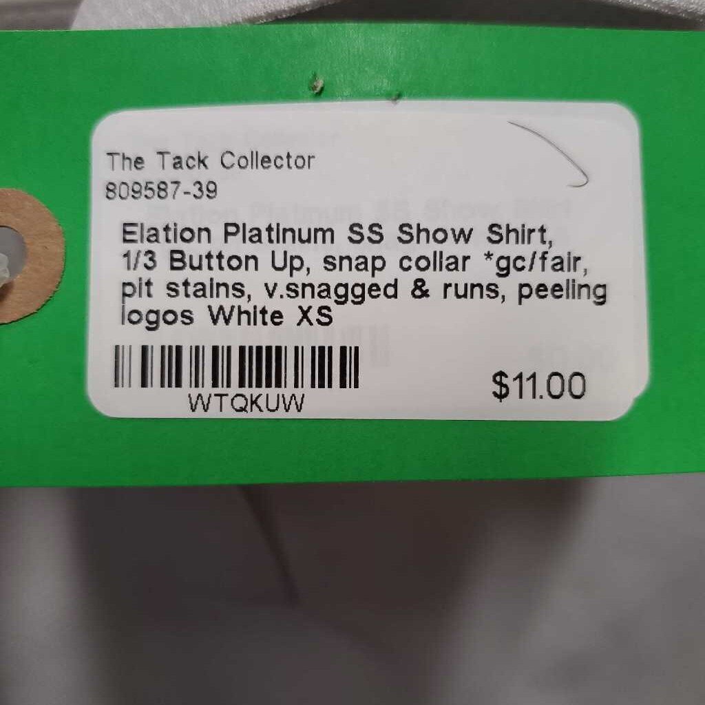 SS Show Shirt, 1/3 Button Up, snap collar *gc/fair, pit stains, v.snagged & runs, peeling logos