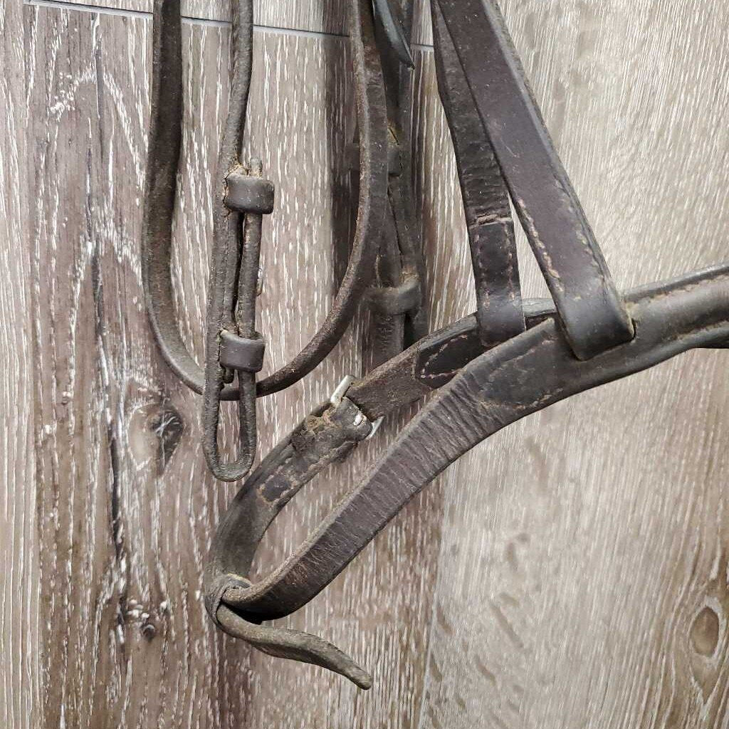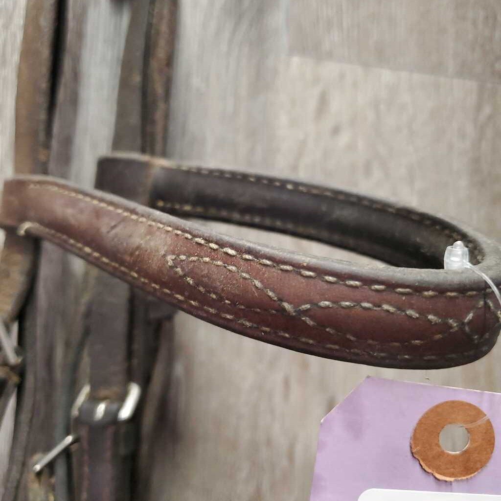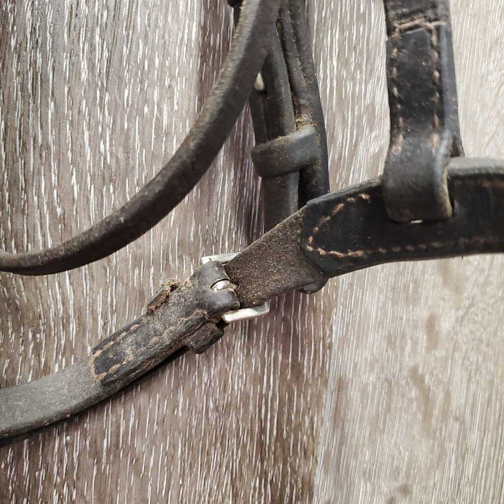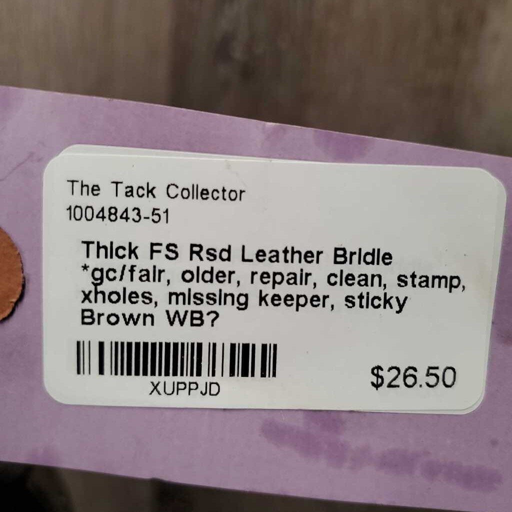 Thick FS Rsd Leather Bridle *gc/fair, older, repair, clean, stamp, xholes, missing keeper, sticky