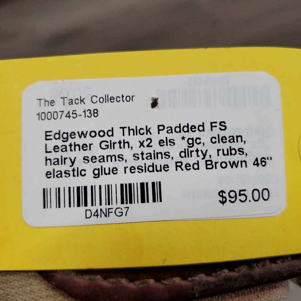 Thick Padded FS Leather Girth, x2 els *gc, clean, hairy seams, stains, dirty, rubs, elastic glue residue SALE