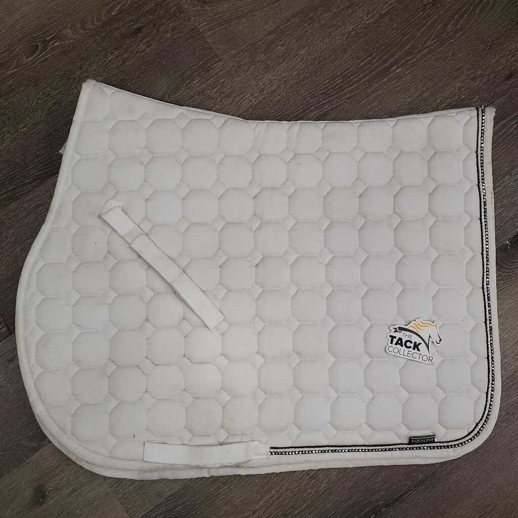 Thick Quilt Jumper Saddle Pad, 2x piping, bling *gc, clean, hairy, rubs, mnr pills, dingy, stains, frays, v.pulled/thin inside seams