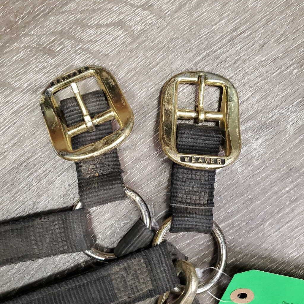 Thick Soft Nylon Halter, adj, snap *NO Crown, gc, dirty, faded, stained, rubs, frayed edges