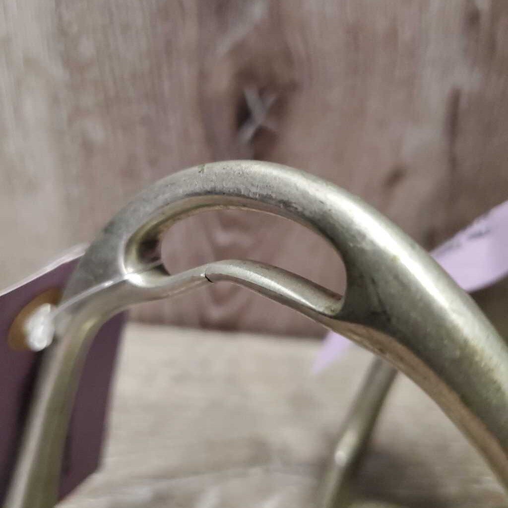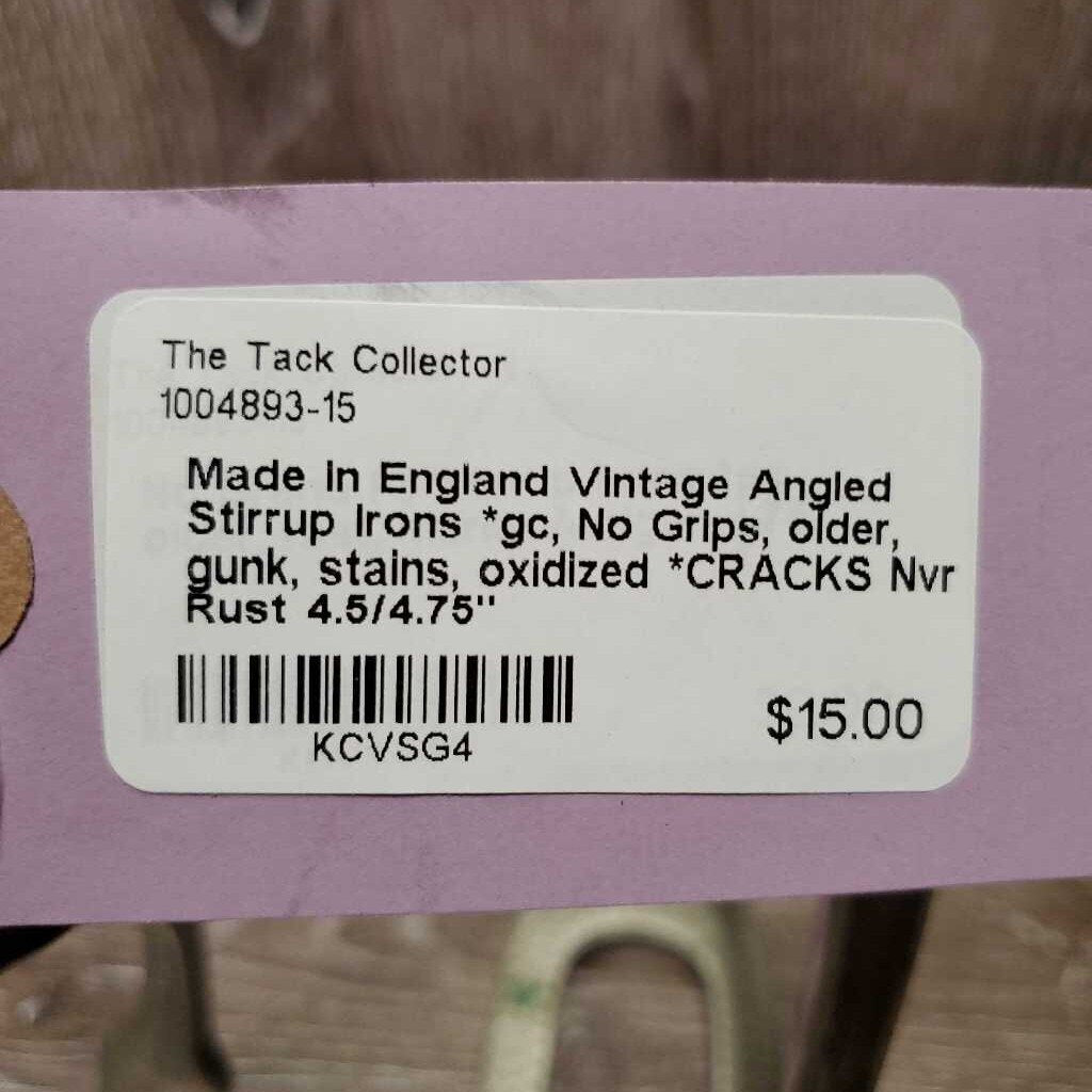 Vintage Angled Stirrup Irons *gc, No Grips, older, gunk, stains, oxidized *CRACKS