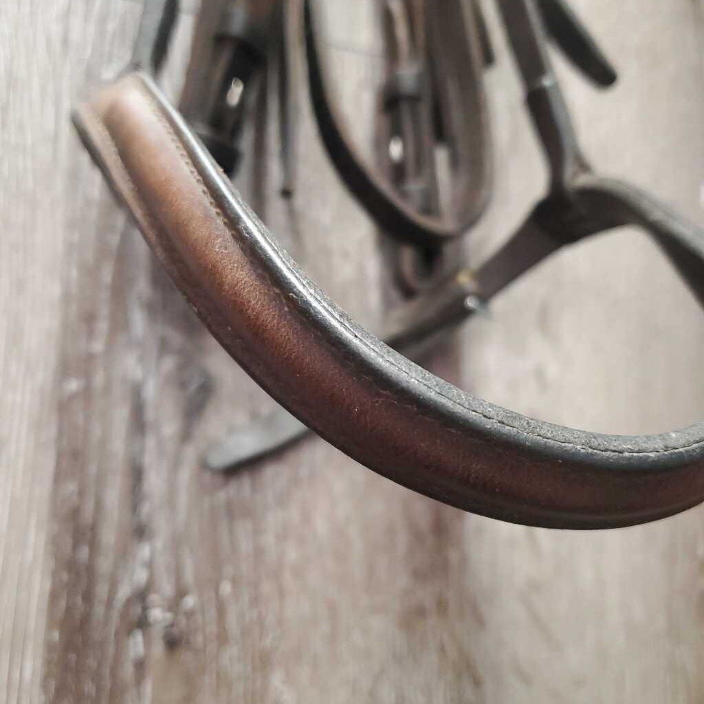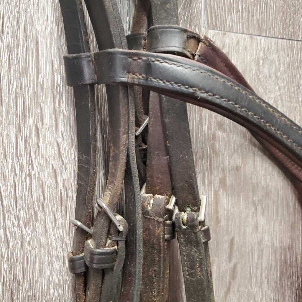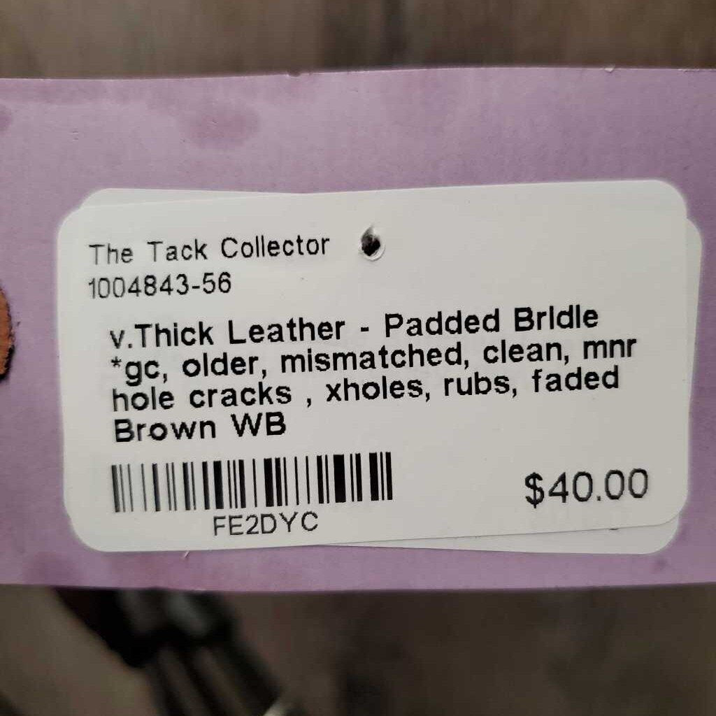v.Thick Leather - Padded Bridle *gc, older, mismatched, clean, mnr hole cracks , xholes, rubs, faded