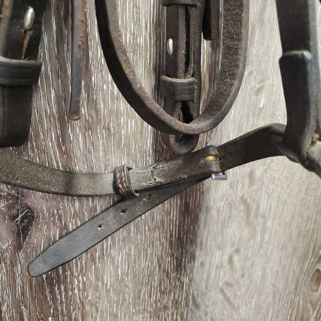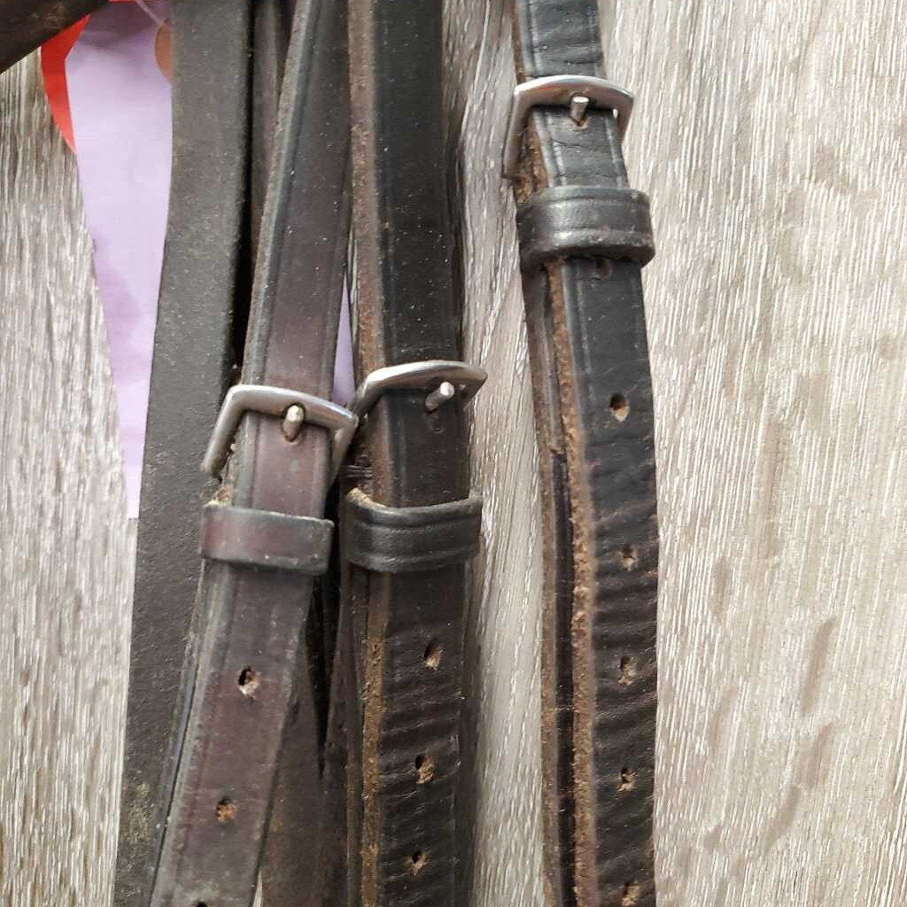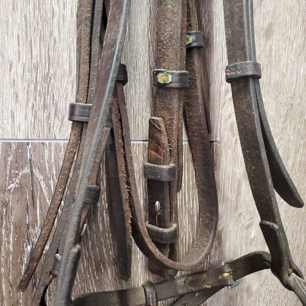 v.Thick Leather - Padded Bridle *gc, older, mismatched, clean, mnr hole cracks , xholes, rubs, faded