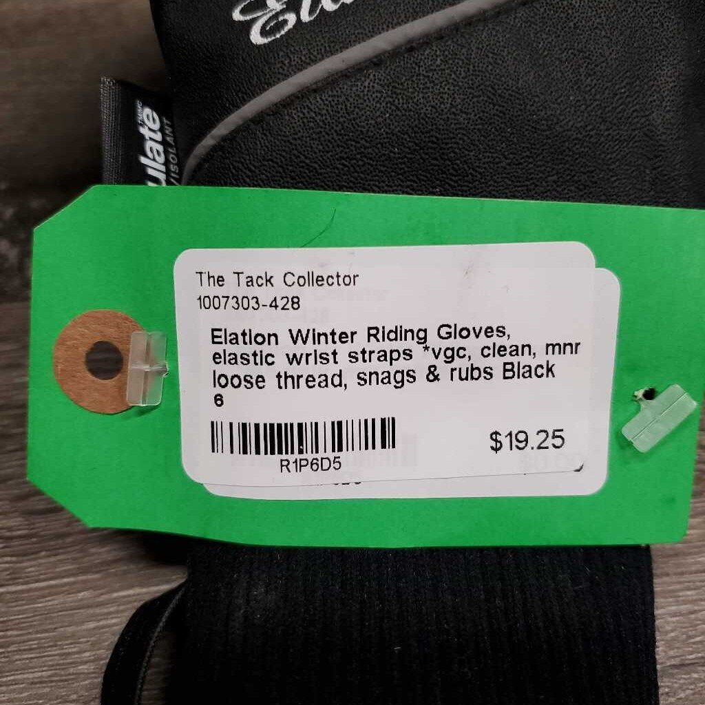 Winter Riding Gloves, elastic wrist straps *vgc, clean, mnr loose thread, snags & rubs