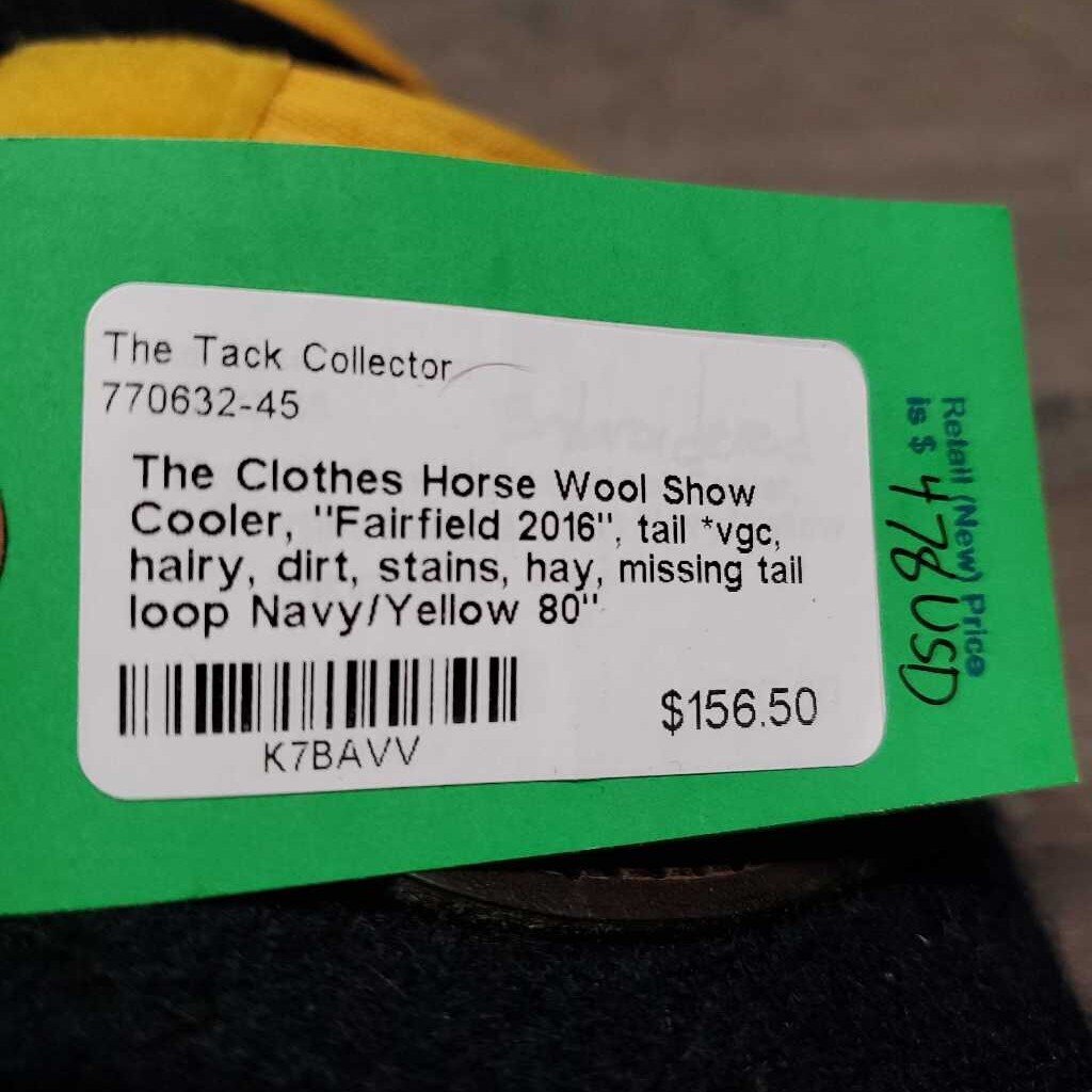 Wool Show Cooler, "Fairfield 2016", tail *vgc, hairy, dirt, stains, hay, missing tail loop